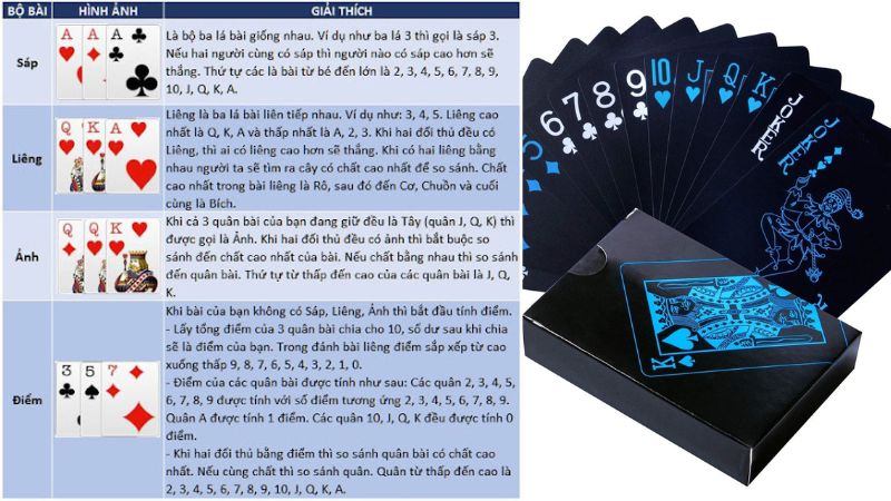 - Ảnh: Bao gồm 3 quân bài Tây như J, Q, K, không bắt buộc phải đồng chất, cùng màu.